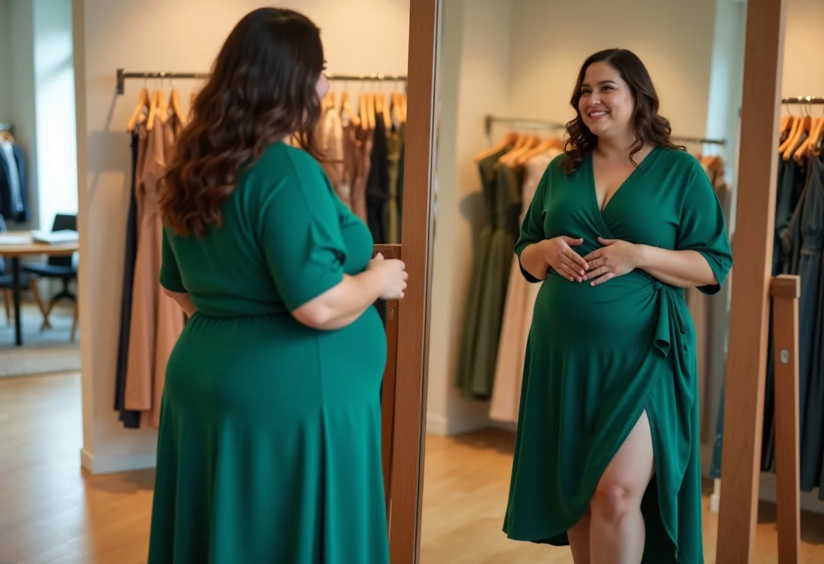 Bien choisir la matière et la coupe permet de camoufler le ventre tout en révélant ses atouts : taille, poitrine, jambes. Le secret, c’est un jeu d’équilibre, où chaque élément compte.